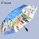 Cmon八国油画伞个性文艺全自动三折叠商务双人晴雨伞男女大雨伞