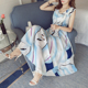 2017夏季新款小清新条纹衬衫网纱连衣裙蓬蓬裙修身显瘦两件套装