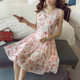 2017夏季新款印花连衣裙女显瘦v领雪纺背心裙旅游度假沙滩中长裙