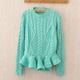 2017春秋季韩国名媛荷叶边鱼尾裙摆高腰毛衣女套头复古麻花针织衫