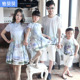怡贝贝亲子装夏装2017新款全家装三口T恤短袖水墨印花旗袍母女装