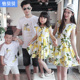 怡贝贝亲子装夏装2016新母女连衣裙父子短袖衬衣拼接红唇全家四口