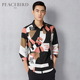 太平鸟男装 男士休闲长袖衬衫复古花卉修身衬衣B2CA51750