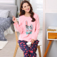 大码睡衣女夏 短袖纯棉家居服女夏季 套装妈妈宽松长裤夏天两件套