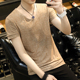 男夏季短袖t恤韩版半袖v领修身打底体恤衫潮流男装冰丝衣服男上衣