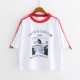 2017夏季韩版新款 印花女孩背影袖子彩色织带圆领宽松女短袖T恤潮