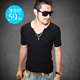 两件包邮夏装新款纯色鸡心领体恤竹节大V领男装修身短袖t恤潮T582