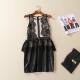 韩版欧美性感睫毛蕾丝拼接PU修身高腰包臀无袖雪纺连衣裙 0.23KG