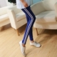 韩版春秋薄款运动打底裤女外穿高腰紧身竖条纹纯棉白边跑步瑜伽裤