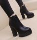 2016秋冬新款斜拉链高跟马丁靴女短靴粗跟防水台圆头女靴潮裸靴子