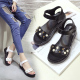 凉鞋女夏季2017韩版新款平底学生百搭女凉鞋厚底柳钉露趾罗马鞋子