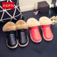 安尚芬皮质棉拖鞋包跟女防滑防水情侣卡通拖鞋可爱厚底保暖月子鞋