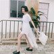 春夏新款韩版复古碎花透视高腰雪纺阔腿裤女九分裤学生薄款休闲裤