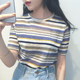 2017春季女装新款圆领短袖条纹打底衫韩版修身显瘦套头T恤女学生
