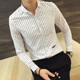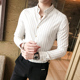 马卢达春季韩版休闲条纹男衬衫 英伦修身衬衣青年白色长袖衬衫男