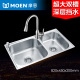 摩恩304不锈钢加厚厨房水槽双槽套餐水龙头洗菜盆台下洗碗盆水池