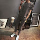 夏季男士短袖T恤圆领印花韩版修身发型师休闲套装夏装衣服男装