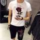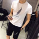 男士套装一套休闲夏季短袖T恤印花半袖潮学生衣服夏装男装潮2017