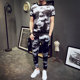 男士短袖套装一套衣服休闲运动夏季圆领碎花半袖T恤学生青少年潮
