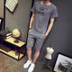 夏季男士短袖T恤韩版夏装休闲套装2017新款一套条纹衣服男装潮