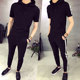 夏季男士短袖T恤韩版休闲套装连帽半袖修身夏装男装一套夜店潮