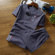 夏季男士短裤韩版亚麻五分裤刺绣中国风大裤衩沙滩裤男装休闲套装