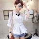 欧洲站2017夏装新款女装上衣潮韩版宽松显瘦透视假两件短袖雪纺衫
