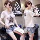我是可清 欧洲站2017新款女装夏装潮上衣印花贴布修身短袖女T恤