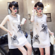 欧洲站2017夏装新款裙子潮韩版女装a字裙白色钉珠无袖雪纺连衣裙