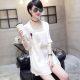 欧洲站2017夏新款白色时尚套装短袖T恤+外搭开衫+短裤女装三件套