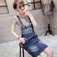 欧洲站2017夏季新款时尚韩版套装潮短袖T恤+牛仔背带裤女装两件套