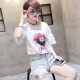 欧洲站2017夏装新款女装韩版百搭上衣潮字母印花亮片短袖白色T恤
