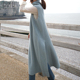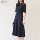 百洛安夏装新款大码女装针织收腰长袖修身显瘦中长款大摆连衣裙