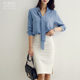 百洛安夏季长袖白领衬衣时尚OL职业装女装修身气质衬衫系带收腰