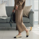 百洛安春装新款简约时尚两件套针织弹力上衣阔腿裤休闲毛衣女套装