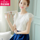 2017夏季雪纺衫女上衣夏短袖白色蕾丝衫韩版显瘦圆领T恤打底衫潮