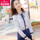 雪纺衫女长袖2017春装新款女装韩版宽松雪纺上衣蝴蝶结印花打底衫