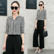 波点条纹长袖V领上衣套装女2017春季宽松阔腿裤长裤休闲两件套