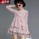 妩芳菲2016冬季新款韩版宽松时尚中长款网纱拼接蕾丝衫打底衫女装