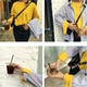 秋装韩版chic风宽松百搭袖口开衩喇叭袖圆领套头长袖T恤打底衫女