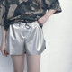 2017夏季新款原宿风银色网眼抽绳宽松短裤热裤透气拼接皮裤女夏潮