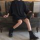 春装百搭万年款宽松大码显瘦纯黑色中袖长款大T恤女 可做连衣裙子