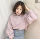韩国ulzzang简约复古学院风小高领纯色打底衫宽松蝙蝠袖卫衣女秋
