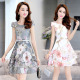 秋水哥弟印花真丝连衣裙女2017夏装新款甜美圆领清新修身短袖裙潮