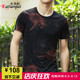 卡天派 2017夏季新款 时尚叶子暗纹印花短袖T恤男半袖休闲体恤潮