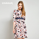 ZIMMUR春款连衣裙2017新款女圆领五分袖气质修身显瘦印花A字裙春