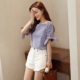 2017夏装新款韩版宽松露肩一字领条纹短袖百搭学生衬衫女上衣夏潮