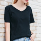 2017新款夏装韩版宽松V领竹棉上衣竹节棉开叉直筒纯白t恤女短袖潮
