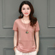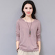 圆领亚麻T恤女2017夏季新款女士小衫时尚大码显瘦文艺风女装