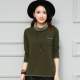 秋季新款棉T恤小衫女士圆领长袖T恤衫文艺复古时尚大码女装上衣